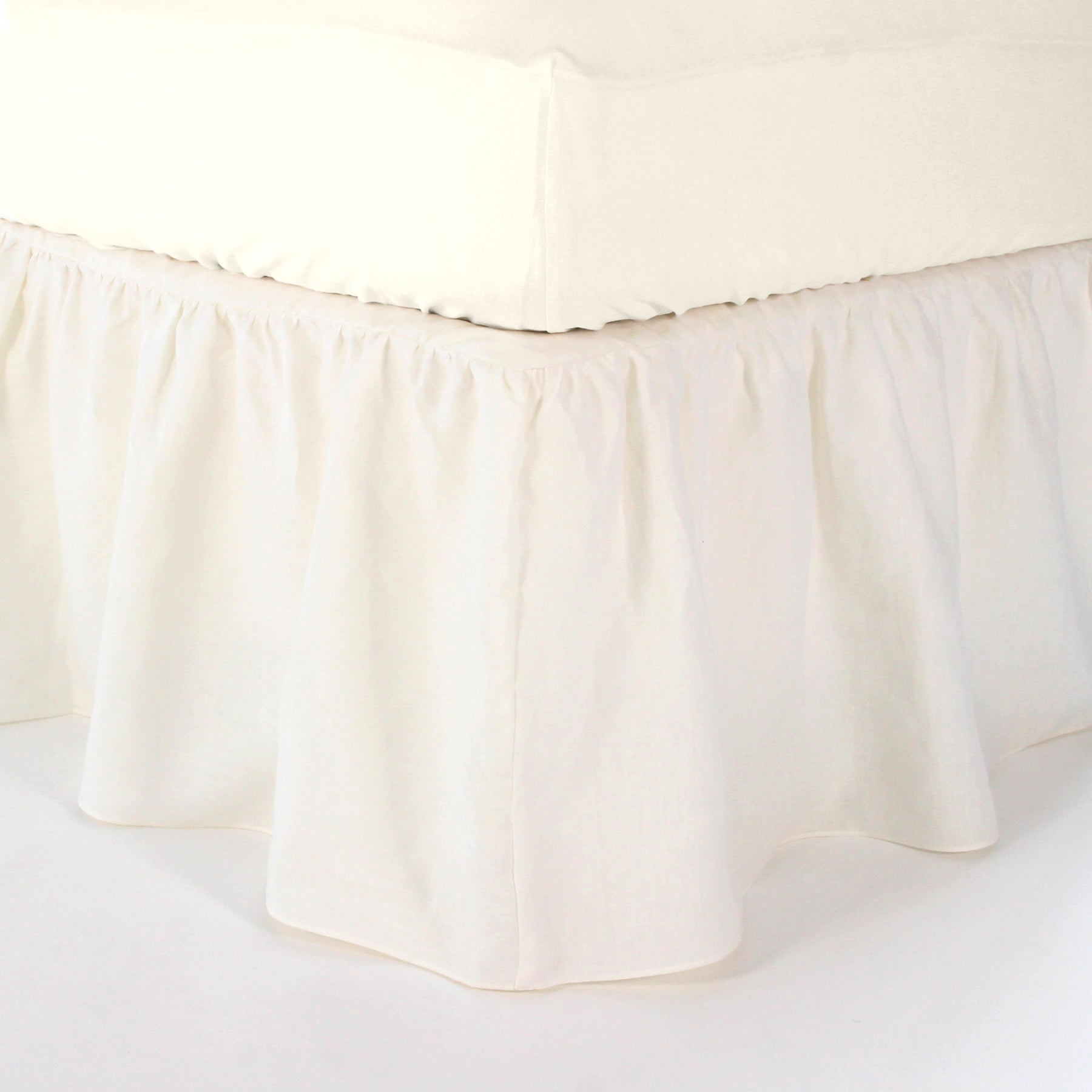 Complete your assortment of bed linens with this gathered, washed linen bed skirt, and you'll give your bed a sumptuous and exuberant bed skirt. This shirred bed skirt will protect you from fungal and bacterial infections while warding off dust and camouflaging items you've placed under your bed.