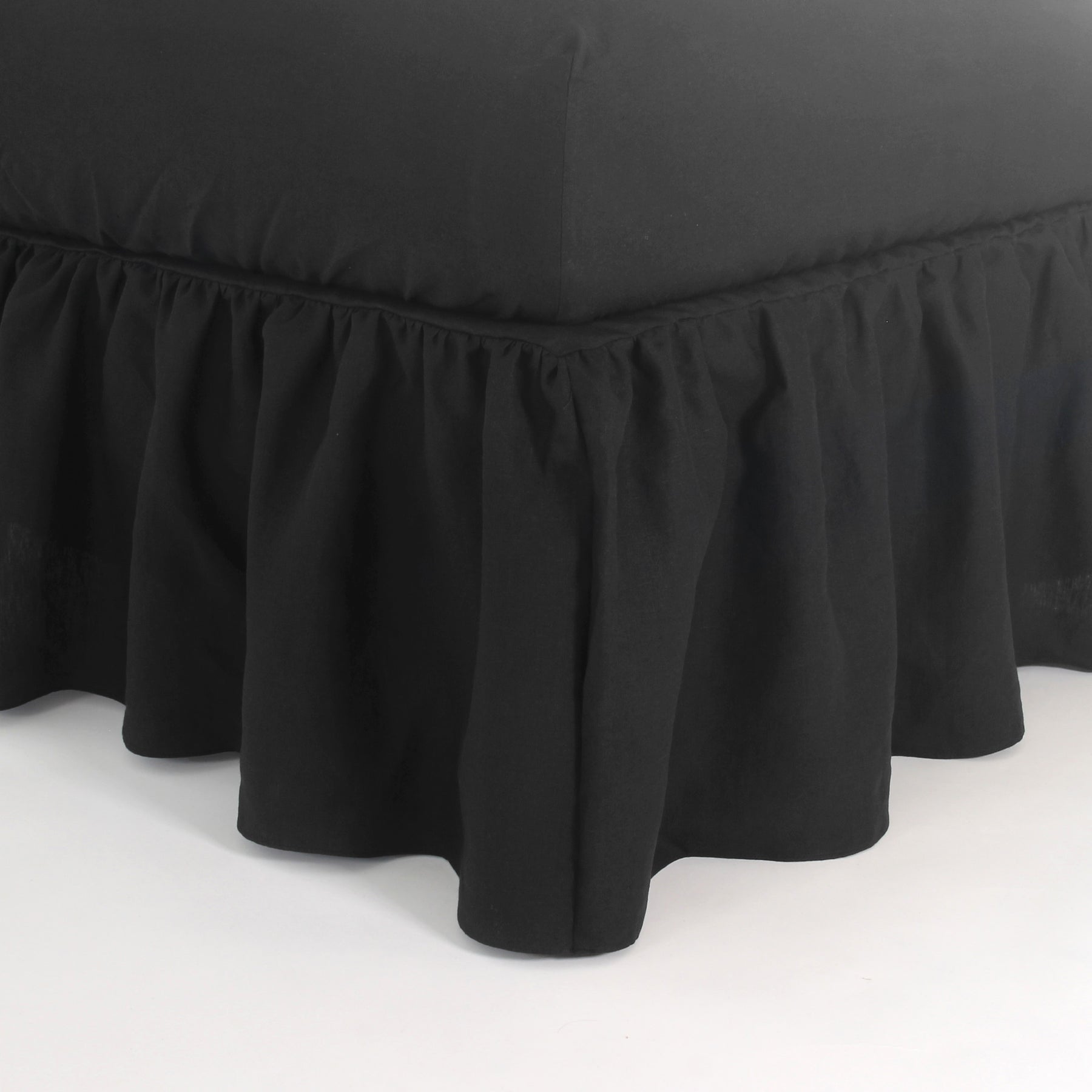 Gathered Washed Linen Bedskirt (Jet-Black)