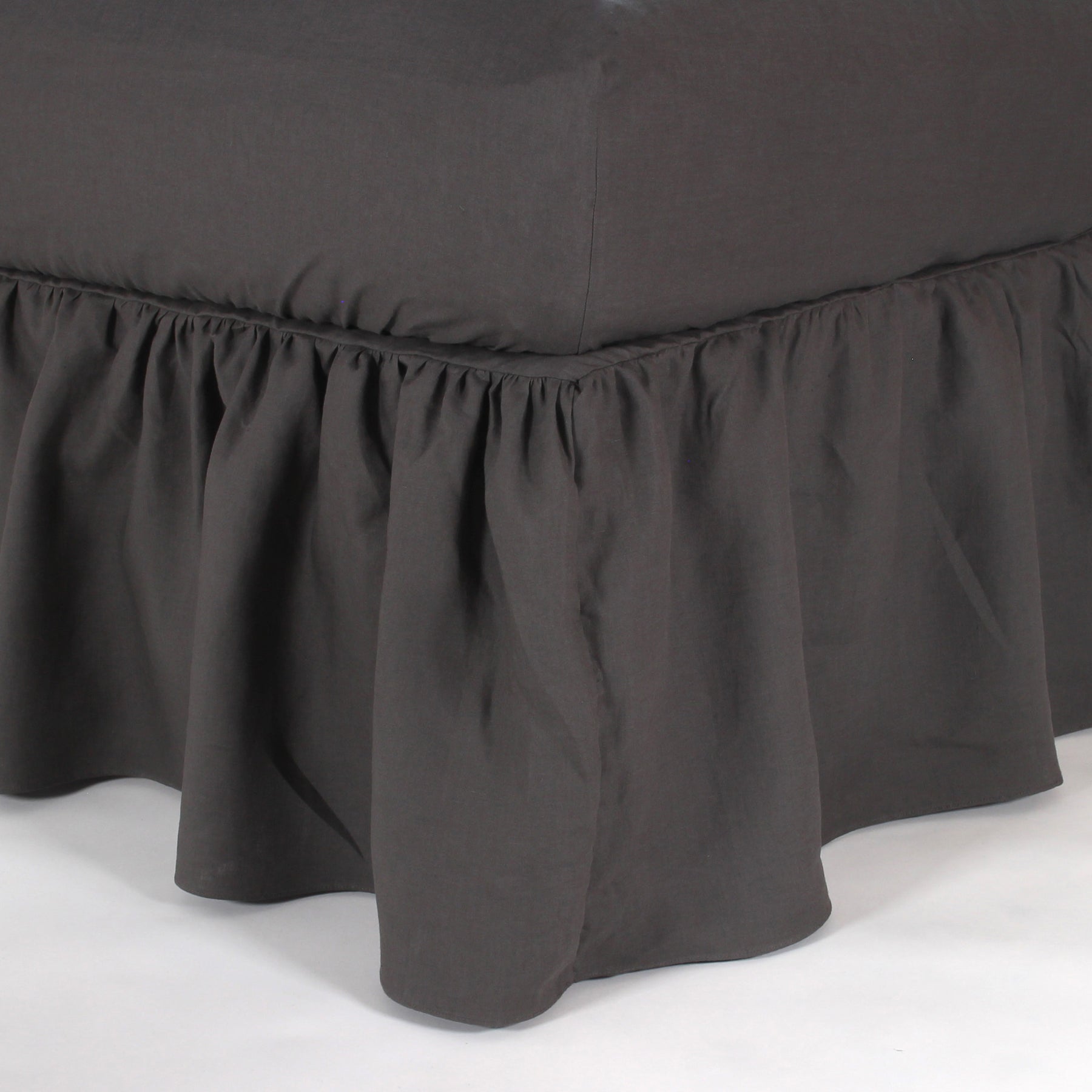 Gathered Washed Linen Bedskirt (Lead Grey)
