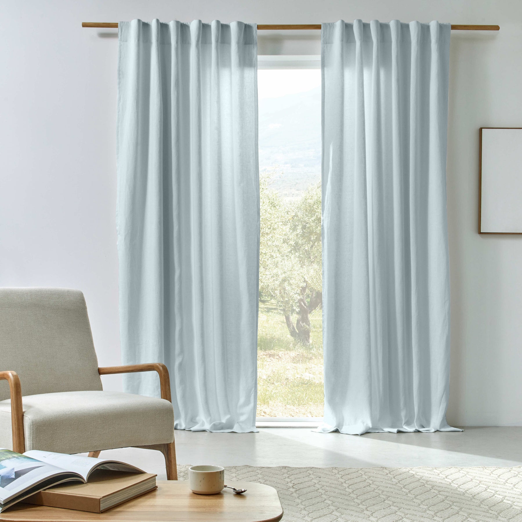 lined linen curtain icy blue