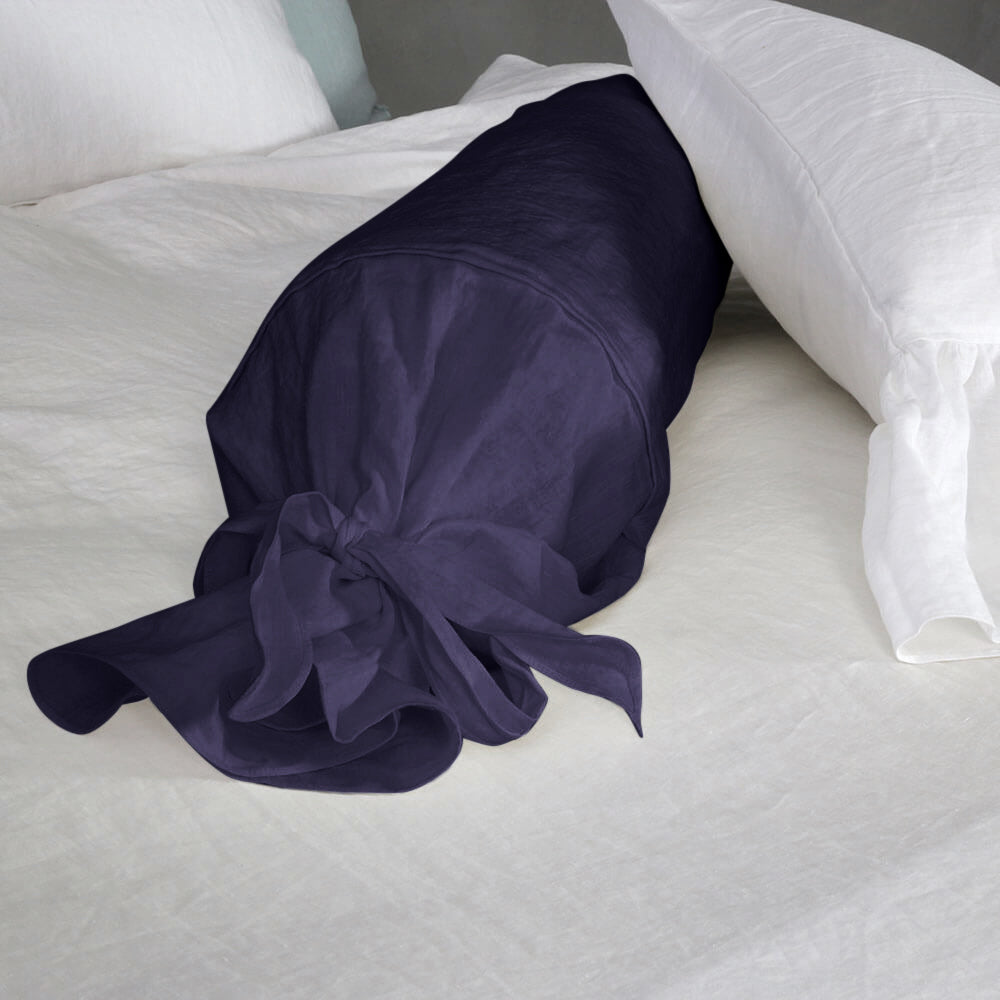 Linen bolster pillow case night blue