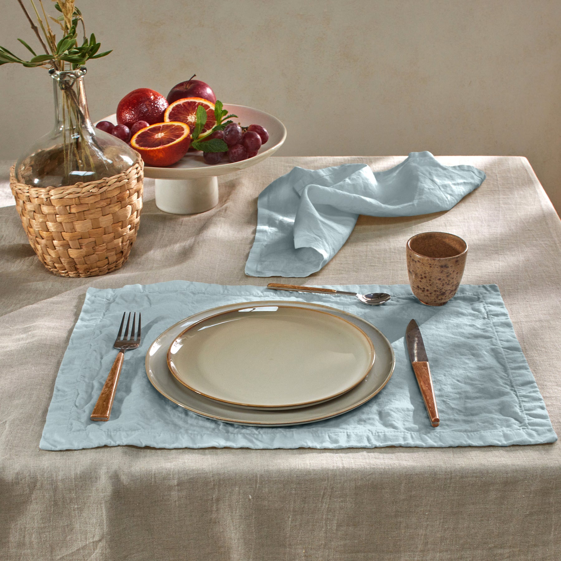 Set of plain washed linen placemats - Icy blue