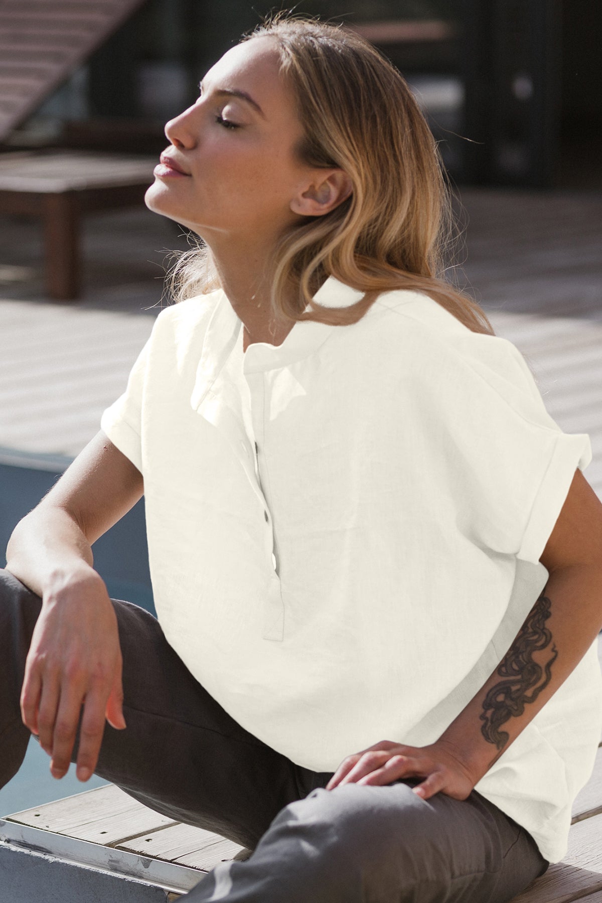 Short-sleeved linen blouse ivory - Flor