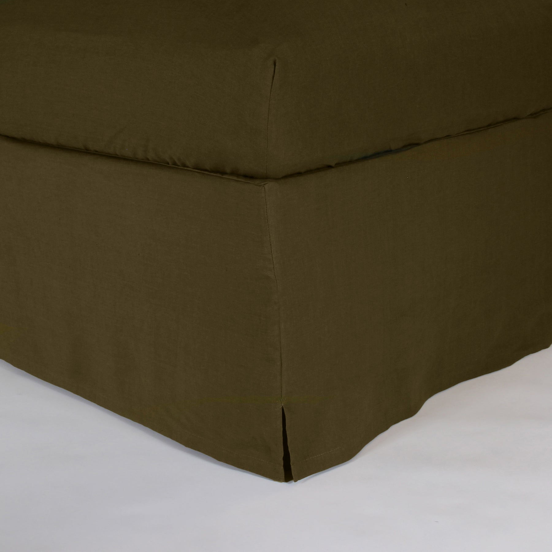 Washed Linen Slit Corners Bed Skirt - Green Olive