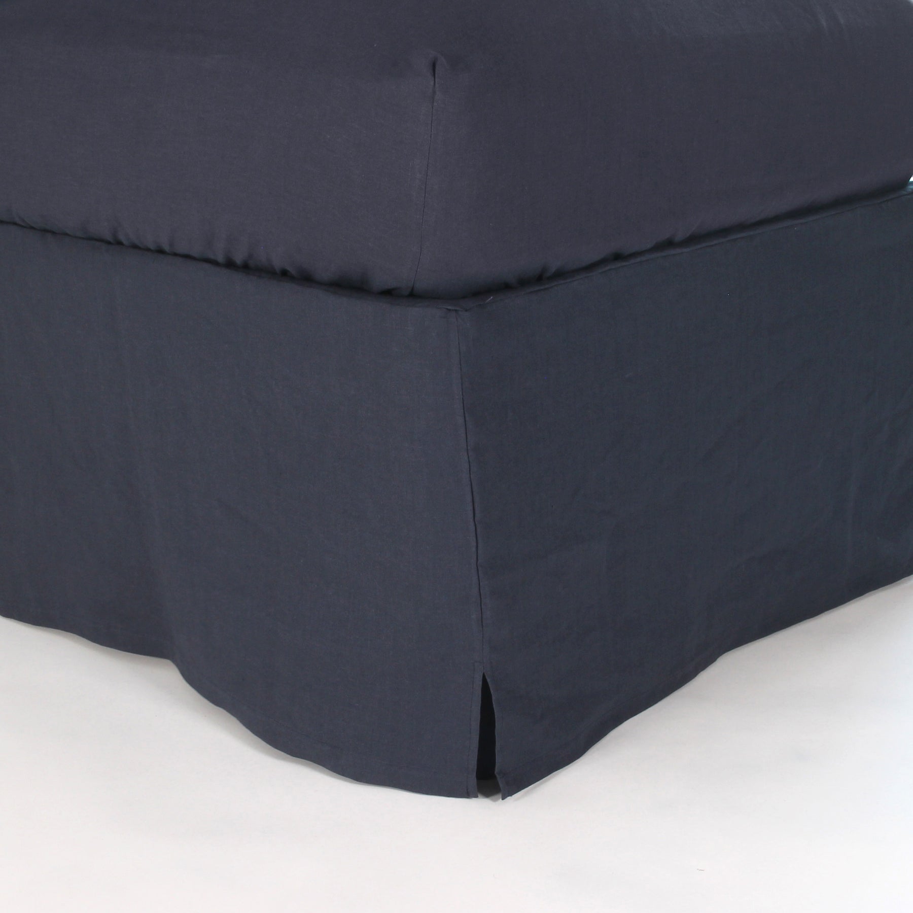 Washed Linen Slit Corners Bed Skirt - Night Blue